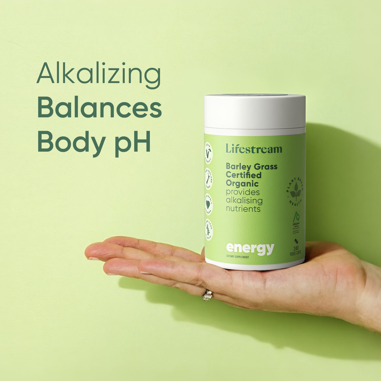 Lifestream Barley Grass is certified organic and an excellent source of nutrition, packed full of vitamins, minerals, antioxidants, natural plant chlorophyll and carotenoids to support optimal health and wellbeing. When taken as a part of a healthy diet made up of a variety of foods, Barley Grass supports acid/alkaline balance. It also provides iron that supports immune system function and contributes to the reduction of tiredness and fatigue.