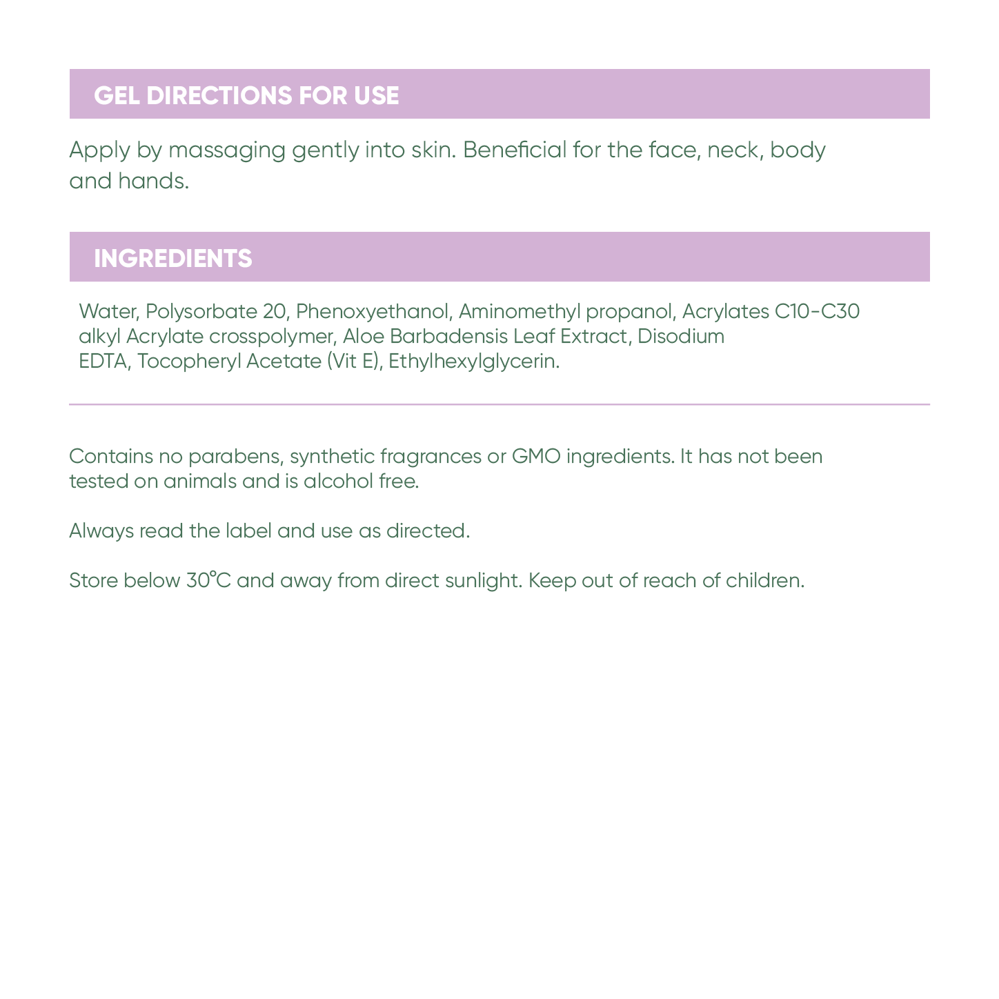 This gel can be used as after-sun care, and helps to lock in skin moisture. It can be used as an alternative to shaving gels and creams, or as a natural hair gel for short hair, and is safe for use on animals.