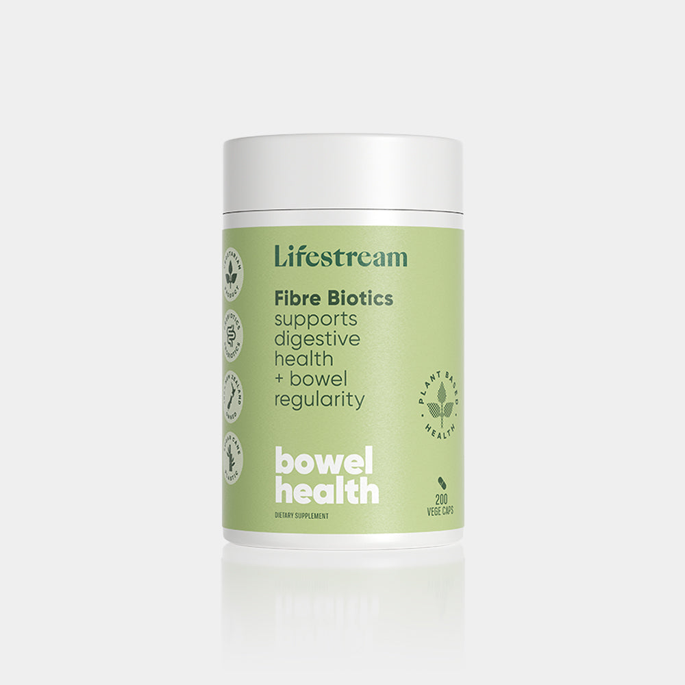 Our Fibre supplement is a unique natural fibre formula with prebiotics and probiotics to support the maintenance of healthy intestinal bacteria and ensure regular bowel movements. It contains natural psyllium husks that when used as part of a balanced and varied diet contribute to bowel regularity. Previously known as Bowel Biotics Fibre. Packed in 100% Sugarcane Plastic packaging - kerbside recyclable.