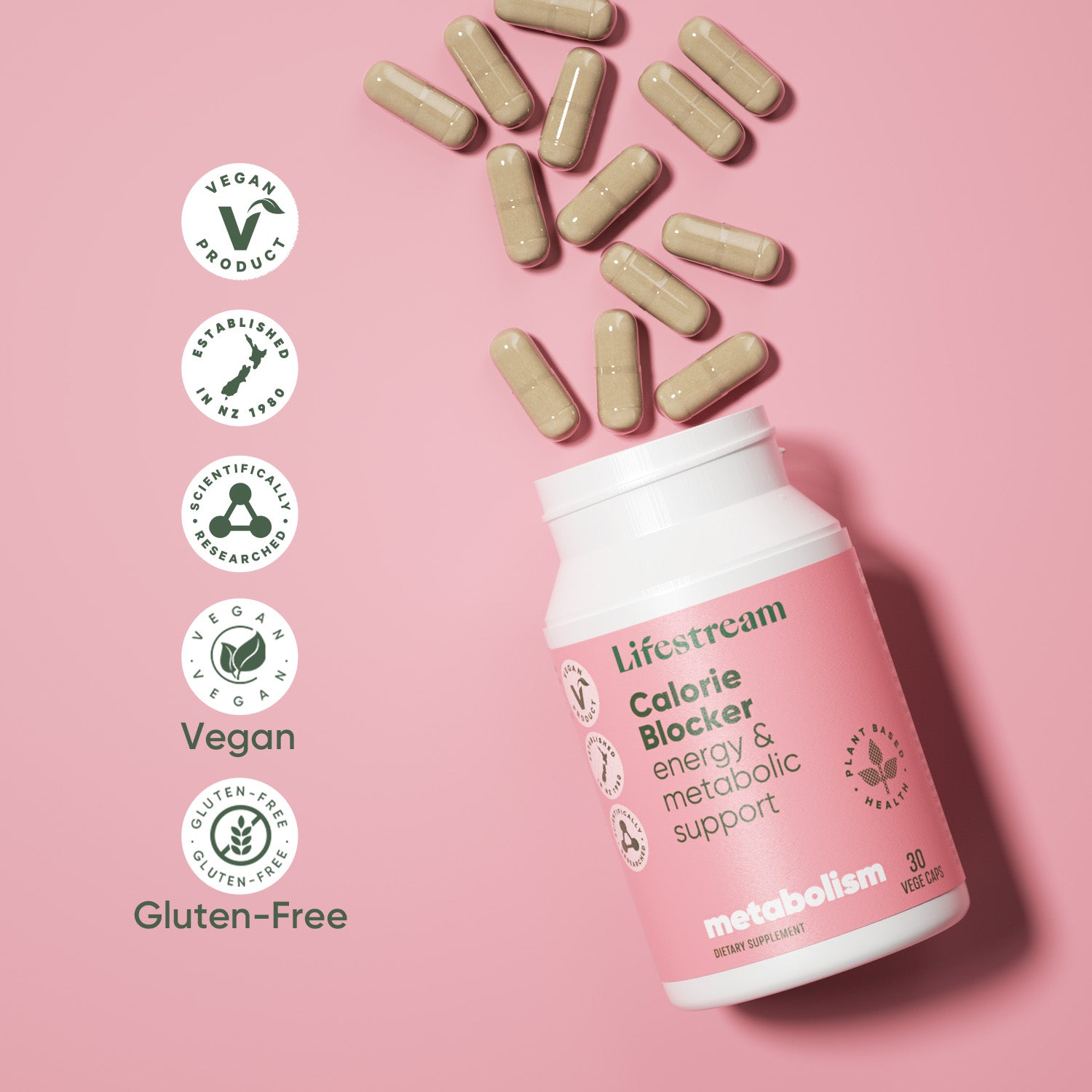 Lifestream Calorie Blocker is a premium quality formula to support natural energy and metabolism. lt contains multiple active ingredients such as Akkermansia muciniphila, Garcinia cambogia Extract, and Green Coffee Concentrate Powder to support gut metabolism, food craving management and energy levels.