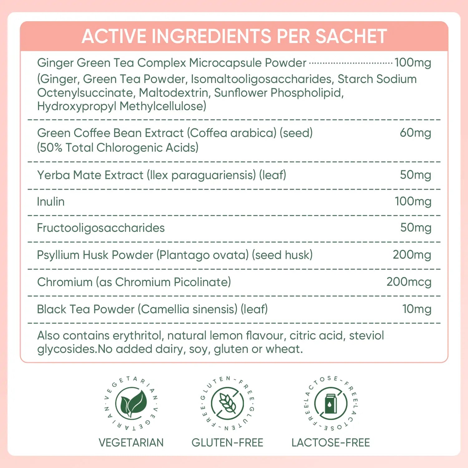 Supports Healthy Metabolic Function - Green coffee bean, yerba mate and tea extracts help support the body’s natural metabolic processes.