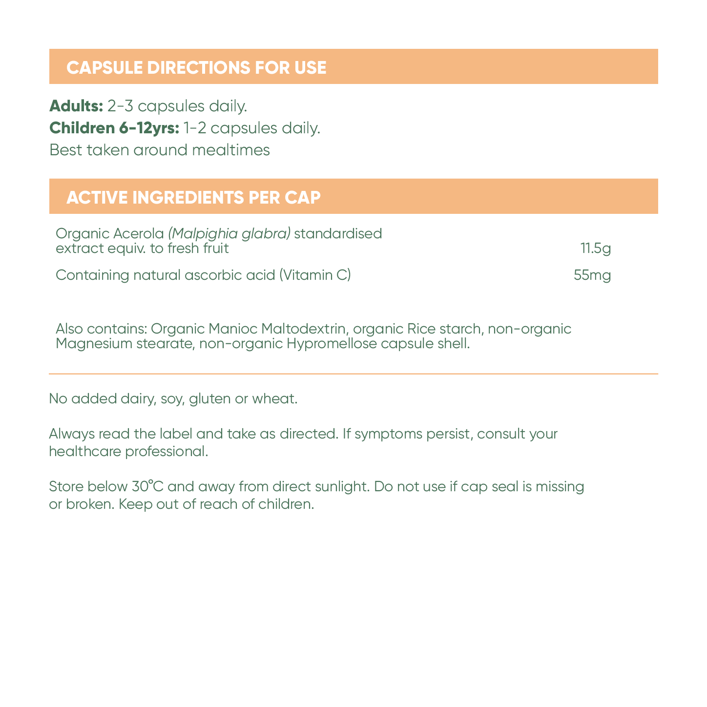 Wholefood vitamin C with superfruit acerola berries for everyday immune health.