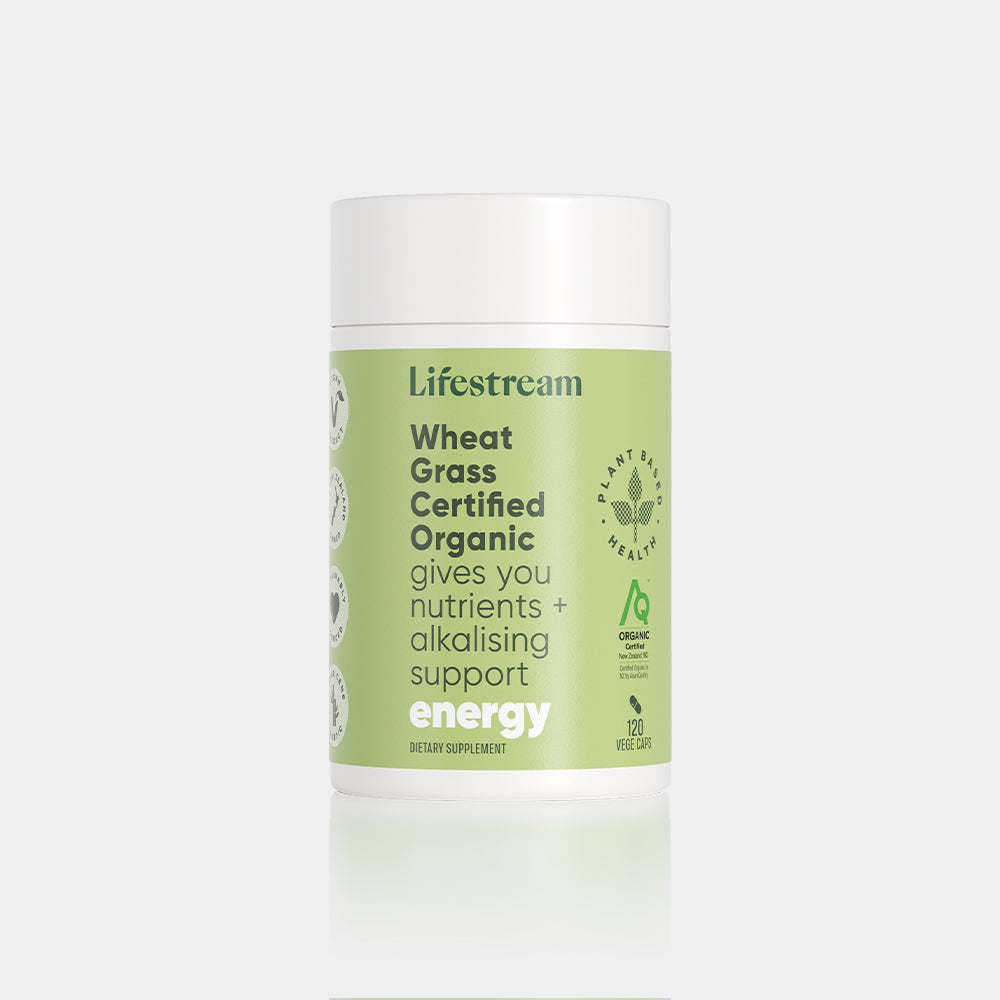 Lifestream Wheat Grass is a 100% pure, NZ grown, certified organic wholesome green food made from the fresh leaves of young Wheat Grass plants, grown outdoors in the New Zealand sunshine. The leaves from the young Wheat Grass plants are harvested at the peak of their potency and flash dried to ensure the highest level of nutrients.